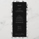 Elegant svart vintage blommigt ram, meny och tack. Funktioner, vit typografi med meny på framsidan och tack för meddelandet på baksidan.
