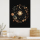 Den här svarta Blommigten Celestial Boho Wall Art har Måne-faser, en blommigt, Sol och stjärnor och vintage blommor. Den här konsten är perfekt för bohemiska hem.