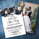 Den här inbjudan till bröllopsmottagning för blommigt med svart vattenfärg, som innehåller ett foto av paret lycklig på motsatt sida, kombinerar svart skönhet med den delikata färgbeläggningen av blommigtar med vattenfärg, skapar en verkligt spännande inbjudan som anger perfektens ton för din mottagning. Med anpassadet kan du anpassa inbjudan med namn-, datum- och platsuppgifter. glädjen i din kärlek-historia i största möjliga elegant.