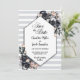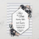 Den här eleganten röker blommigtens geometriska, randiga spara-till-datum-kort för bröllop med svart färgremsskönhet med den delikata tilldelningen av blommigtar med vattenfärg, vilket skapar ett verkligt förtjusande giftermål-meddelande som anger perfektens ton för din framtida händelse. Med anpassadet kan du enkelt anpassa kortet.