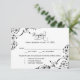 Samla gästsvar och middagsval med detta eleganta svarsbrevskort med utsmyckade svarta blomsterorneringar och rosett hörndekorationer. Designen kombinerar en vacker "Svar" -rubrik i kalligrafi med ren serif-typografi för en tidlös, formell känsla. Fält för gästnamn, närvaro och tre anpassningsbara menyval är tydligt organiserade under svarsdatum. Den invecklade botaniska rullningen med cirkulära bärmotiv tillför en distinkt vintagecharm. All text är helt redigerbar.
