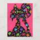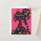 Den här snygga svarta katten sitter mot en levande bakgrund i rosan och visar upp sina detaljerade, flerfärgade, blomformade markeringar i den här upplyftande designen.
