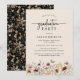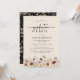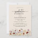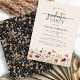 Svart Boho-examensinbjudan. Denna stilrena och eleganta examensfestinbjudan har vackra, handmålade akvarellvilda blommor arrangerade som en vacker bukett och elegant kalligrafiskrift. Baksidan har ett vackert koordinerande mönster på svart bakgrund. Hitta matchande produkter i Boho Wildflower Graduation Collection.