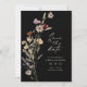 Svart Boho Spara Datum Platt Kort. Detta stilrena och eleganta spara-datum-kort har vackra handmålade akvarell- vilda blommor arrangerade som en vacker krans perfekt för vår-, sommar- eller höstbröllop. Hitta matchande föremål i Boho Wildflower Wedding Collection.