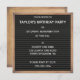 Denna roliga fyrkantiga inbjudan har utseendet av en klassisk bokstavstavla i svart infattad i en brun träram. All text i vit bokstavsstil är redo för din personliga touch så att du kan skapa den perfekta inbjudan för födelsedagar, årsdagar eller fester för alla tillfällen.