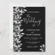 Svart botaniskt bladskript bröllop inbjudningar