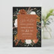 Bilden Rustic vattencolor blommigt bröllop sparar datumet inbjudan. Med vacker rost, teracotta, rosa, svart och sage grönt pampas gräseucalyptus vattenfärgdetaljer. Den här moderna bröllopsinbjudan kommer säkert att sätta stil för din stora dag.