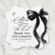 Lägg till en söt och stilren finish på din Hon knyter knuten bröllopsfest med dessa eleganta svarta tackfavorit etiketter. Med en delikat akvarellbanddesign är de perfekta för att klä upp festerfavoriter eller lägga till en charm till presentpåsar och dessertlådor.