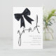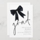 Svart Bow studenten Grad sparar datumet. Tillgänglig digitalt och utskriven. Den här designen har en svart coquette-båge överst till lämnat och informell uppsättning handskriftsskript stil för huvudrubriken, graden och är enkel att anpassa typografin till högerna grund med dina detaljer.
