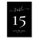 Elegant Calligraphy Script Heart Black Bröllop Bordsnummer Dubbla Sided with anpassningsbar personlig. Hjälp dina gäster att enkelt hitta rätt på med de här enkla dubblorna för bordsnummer på eleganten. Enkel att anpassa, ha nummer, koppla namn med kärlek hjärtmotiv och datum! Har ett söt hand som skriver calligraphy "bord"-skript i vitt på svart bakgrund. Idealisk för minimalistisk elegant och modernt bröllop.