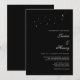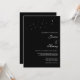 Upplev hur en kväll under stjärnorna har förtjusats med vår kelestiella Elegant skript Måne & Stars minimalistiska svartbröllopsinbjudan. Den här inbjudan innehåller elegantens kalligrafi som är inställd mot en svart bakgrund i chicen, som är försedd med delikat måne och stjärnor, och som fångar kärnan i ett romantiskt och sofistikerat celestial firande.