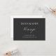 Det här är en svart Bröllop OSA-kortmall. Är du tittar för en elegant, modern OSA kort att lägga till i din bröllopsinbjudan som kan anpassas till ditt unika stil? Titta bara på vår minimalistiska responskortmall - perfekt för DIY-bruden. Lägg enkelt till ditt eget QR för att dirigera gäster till bröllop webbplats. Spara tid och pengar utan att kompromissa med kvalitet eller stil genom att slå ihop din kontorsutrustning.
