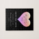 Modern, enkel, rolig svart bröllops-spara-datum-pussel, med romantisk citat och vackert rosa hjärta, symbol för stark, oändlig kärlek, värme, rikedom och tro. Oförglömligt bröllopsbesked! Perfekt present för en liten grupp av dina käraste och mest speciella gäster. Dina gäster kommer att känna spänningen när du skickar dem denna unika, förtjusande och minnesvärda tjänst som har en personlig betydelse för dem och kommer att vara en bestående minnes efter bröllopsdagen!
