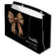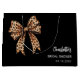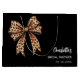 En svart bakgrund. Dekorerad med en stor båge med leopardmönster. Personliggör och lägg till brudens namn och ett datum. Svart handskriven stilspråk.