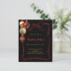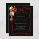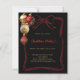 För en jul party med familj och vänner.. Dekorerad med en röd, enkel, handdragen båge, röd och guld. Anpassa och lägg till informationen. Jul party med hjärta. Svart bakgrund. 1 lakan = 1 inbjudan tryckt kant till kant.