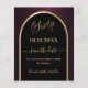 A Spara datumkortet för en 60:e födelsedagsfest. En svart och burgundisk bakgrund, dekorerad med faux guld arch. Anpassa och lägg till ett datum och ditt namn. Texten: 60 och Spara datumet skrivs med ett stort trendig-handskript i stil. 1 lakan = 1 spara datumet som skrivs ut kant till kant.