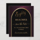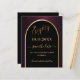A Spara datumkortet för en 80:e födelsedagsfest. En svart och burgundisk bakgrund, dekorerad med faux guld arch. Anpassa och lägg till ett datum och ditt namn. Texten: 80 och Spara datumet skrivs med ett stort trendig-handskript i stil. 1 lakan = 1 spara datumet som skrivs ut kant till kant.