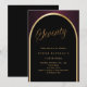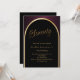 En 70-årsinbjudan till eleganten. En svart och grumlig bakgrund med en gyllene båge på framsidan.