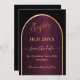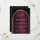 A Spara datumkortet för en 80:e födelsedagsfest. En svart och burgundisk bakgrund, dekorerad med faux guld arch. Anpassa och lägg till ett datum och ditt namn. Texten: 80 och Spara datumet skrivs med ett stort trendig-handskript i stil.