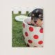 Svart chihuahua-valp i en röd skorpa kopp pussel