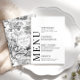 Höj det klassiska bröllop med ett känsligt menykort. Med känslig vit svart blomma mönster. Monogrammet för brud och groom på baksidan lägger till en personlig och ett minnesvärt inslag till den övergripande utformningen.