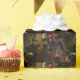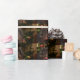 Den svart chowhunden är lycklig, att han funderare honom grundar hans julklapp, en prydnad att han funderare är för hund älskarejul för boll som en gullig helgdag slår in papper