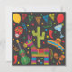 Ljus och färgrik Cinco De Mayo Fiesta Fest Inbjudan med sombrero, pinata, kaktus, skalle, banderoll, ballonger, gitarr, maracas, chilipeppar, gitarr och festsnören. Perfekt för vilken mexikansk temafest som helst. Handritad illustration av McBooboo.
