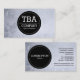 En visitkortsmall med en enkel men uppmärksam tagningscirkel med en vit prickad kant. Initialer Company namn och affärstyp på framsidan, med namn och andra kontaktuppgifter på baksidan med hjälp av samma cirkelmotiv som ordnats på ena sidan. Den här enkla men mångsidiga mallen kan anpassas på många olika sätt. Den här versionen har en prickad linje över mitten av den främre cirkeln.