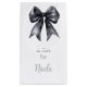 Vacker liten presentpåse för bröllopsfest med svart coquettebåge-band. Orden kan ändras för att passa dina egna detaljer eller krav
