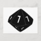 D10-Bordsnumrets vykort - Bord 7-Dubbla Geeky och D10-bordsnumrets vykort med 10-sidig D10-sidig dice i svart. Det här bordsnumret för snabbt och roligt är dubbla-sidigt, så se till att siffrorna på båda sidor ändras. Enkel att anpassa, ändra numren för det eller de bordsnummer som ska användas. Klicka på Anpassa om du vill söka efter fler anpassningsalternativ.