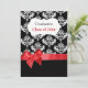 Svart Damask & Röd Band Examen Inbjudan