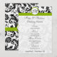 Vintage Moderna Svarta och Vita Blommiga Damaskmönster med äppelgrön Kant Bröllopsinbjudningar. Perfekt för Rococo Barock, Medeltida Renässans, Art Deco Art Nouveau, Glamorösa 20-talet Gatsby, Viktorianska Bröllop eller Eleganta Bondgård Bröllopsteman och Lokaler.