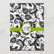 Vintage Moderna Svarta och Vita Blommiga Damask-mönster med Grön Kant Bröllopsinbjudningar. Perfekta för Rococo Barock, Medeltida Renässans, Art Deco Art Nouveau, Roaring 20s Gatsby, Viktorianska Bröllop eller Eleganta Bondgårdsbröllop Tema Lokaler.