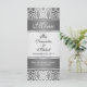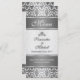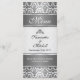 Svart dämpningsmönster på ett Bröllop Menu-rabattkort för övertoning i silver. Matchningsobjekten visas nedan: