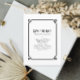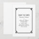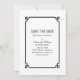 Enkel och minimalistisk Deco Chic Save the Date-annonsering med en modern svart art deco-ornamental kant. Denna klassiska och eleganta save the date-inbjudan är lätt att anpassa med dina bröllopsdetaljer. Hitta fler anpassningsalternativ genom att klicka på Anpassa.