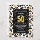 En modern och roligt utformning med svartvit och guld leopard som infunderas faux guld glitter, där ett svart pålägg visas med vita textmallar och ett stort antal femtio i guld på det. De passar perfekt för alla 50:e/50-årsdagen och för affärsdagen firande. Anpassa ordalydelsen till kostym för ditt evenemang.