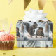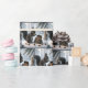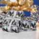 En ekorre har en akorn i en snöskog omgiven av en samling akorner i en liten läderväska