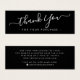 Elegant, svart tack för ditt köp eller litet infogningskort för företag. Du kan ändra typsnitt och färger med designverktyget.