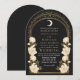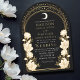Fånga en tidlös elegans med den kelestialinspirerade inbjudan från Art nouveau! Med en strålande guldbåge, delikata vita blommor och skuggande stjärnor mot en svart bakgrund anger den här designen tonen för ett sofistikerat firande. Perfekt för bröllop, galas och milstolpar! Observera att guld på den här produkten INTE är äkta folie, utan tryckt platt.