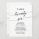 Det svarta bordsnumret 26 för sittande sjökort i elegant är perfekt för ett enkelt bröllop. Neutraltens utformning har ett minimalistiskt kort som är dekorerat med romantisk och visuell typografi. Kortet skrivs ut på framsidan och baksidan (dubblan).