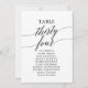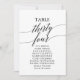 Det svarta bordsnumret 34 för sittande i elegant är perfekt för ett enkelt bröllop. Neutraltens utformning har ett minimalistiskt kort som är dekorerat med romantisk och visuell typografi. Kortet skrivs ut på framsidan och baksidan (dubblan).