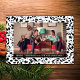 Ett enkelt och modernt Helgdag-foto-plattkort med elegant löv och blomma gräns i svartvitt. Det här klassiska och sofistikerade fotokortet för blommigt kan enkelt anpassas med ett foto och en personlig jul hälsning. Hitta fler anpassningsalternativ genom att klicka på Anpassa. Fotografi © Storytree Studios, Stanford, CA