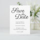 Typografiktexten Spara datum är ett vackert kalligrafi av eleganten stil i contemporary i svart mot klassisk vit bakgrund. Lägg till förlovningens foto på baksidan om du vill. Anpassa bakgrunden till färg om du vill. Denna kalligrafi av bröllop spara datum stil i elegant finns på en rad dekorativa bakgrunder i min butik.