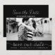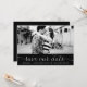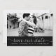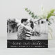 Whimsisk och feminin spara vår datum-fotoannonsering med vit elegant skrift på svart bakgrund. Andra färger och liknande föremål finns tillgängliga.