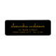 Svartadressetikett för svart och Guld Modern och Elegant Svart skripttypografi Bröllopbjudande Returadress som är underbar för Spara datum, OSA, Möhippa, Babykläder, Födelsedagsfest eller Helgdag eller inbjudan till jul. Texten i den här handskrivna moderna manustypografietiketten kan uppdateras och anpassas med ditt namn och adress. Dessa babyskor, Möhippa, Bachelorette Party by Mail, Bröllop eller Delay the Date Returadress Lables är perfekt för den händelsen eller party som måste flyttat till ett nytt datum.