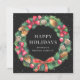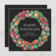 Anpassningsbar svart visitkort för helgdag med en vattenfärgad krans av barrträd träd grenar och koner, rosett band och prydnadsföremål på en svart snöbakgrund. Anpassa enkelt det här helgdag för vattenfärgsföretag med ditt företag namn och ditt meddelande.