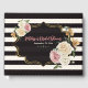 Denna svarta och elfenbenskvitta randiga bröllopsfest-gästbok med blommor kan också användas som bröllopspresent genom att redigera texten på framsidan så att den innehåller namnen på bruden och brudgummen samt datumet för bröllopet istället för texten "Brodal Shower" i korallrosa. Gästboken matchar bröllopsfest-kollektionen nedan och har samma designelement som användes i många av de samordnade delarna, inklusive blomsterbuketter av rosor i krämfärg, rosa och blekgul med orange peruanska liljor och salvia gröna och oliv blad. Om du behöver ytterligare matchande artiklar, vänligen maila din förfrågan till niteowlstudio@gmail.com eller använd Zazzle-chattfunktionen för att komma i kontakt.