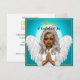 En afroamerikansk ängel med utsträckta vingar och bedjande händer för med sig bud om både tröst och glädje.