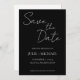 Enkla bröllopsinbjudningar med vit, stiliserad skrift på svart bakgrund. Redigera och ersätt namn, datum och plats med dina egna. Välj storlek på inbjudan och pappersstil.