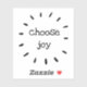 Vinyl, genomskinlig, fyrkantig dekal med svart skrift. Illusionen från sol ger ge mer mening åt ord när det gäller att välja glädje och lycka. Påminnelse om perfekt som ska läggas till i en bärbar dator, vattenflaska eller bindare.